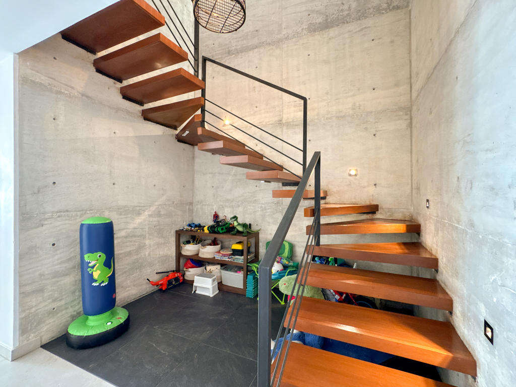 На верхнем этаже находятся кабинет или игровая комната и главная спальня с выходом на террасу с видом на море.