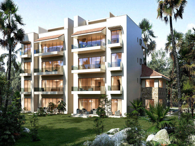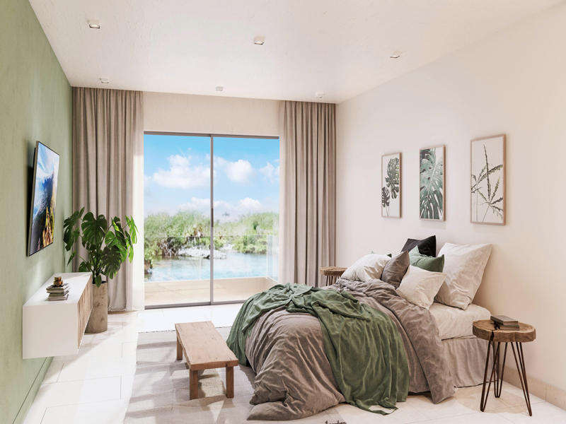 El nuevo condominio Caleta Maya está situado en una zona verde de una residencia cerrada, junto a una pintoresca laguna y un cenote, con impresionantes vistas al mar.