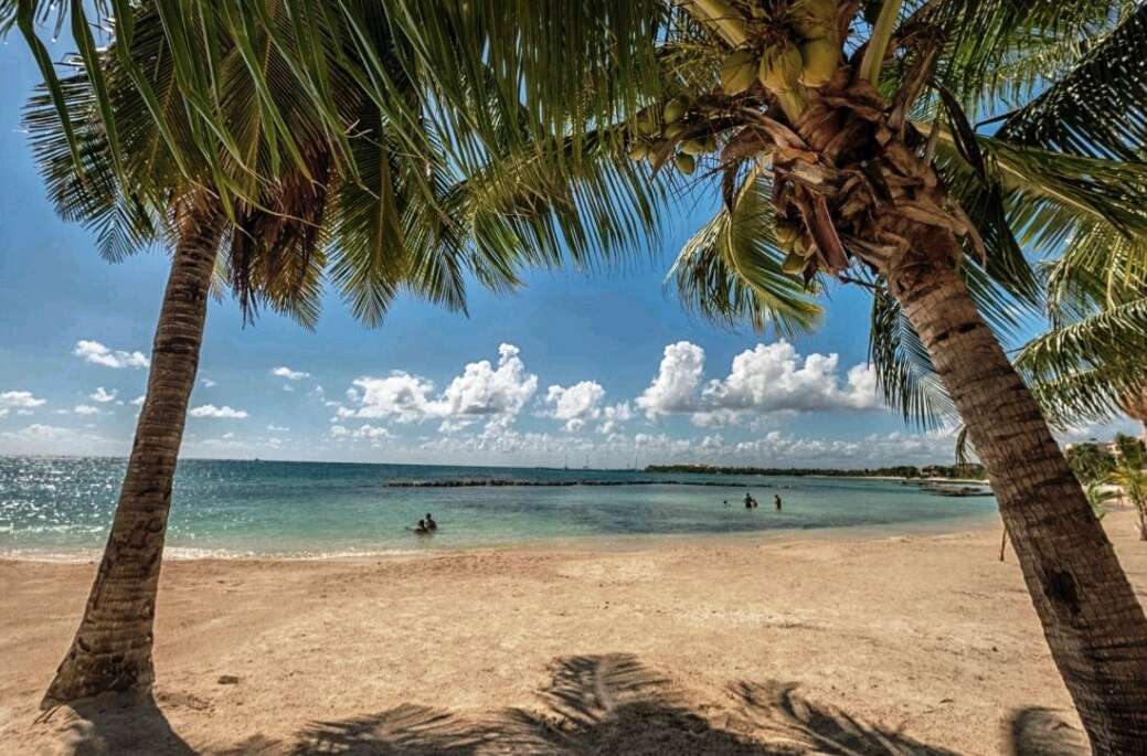 De la casa a la playa hay menos de un minuto a pie a través de un patio sombreado, césped y piscinas.