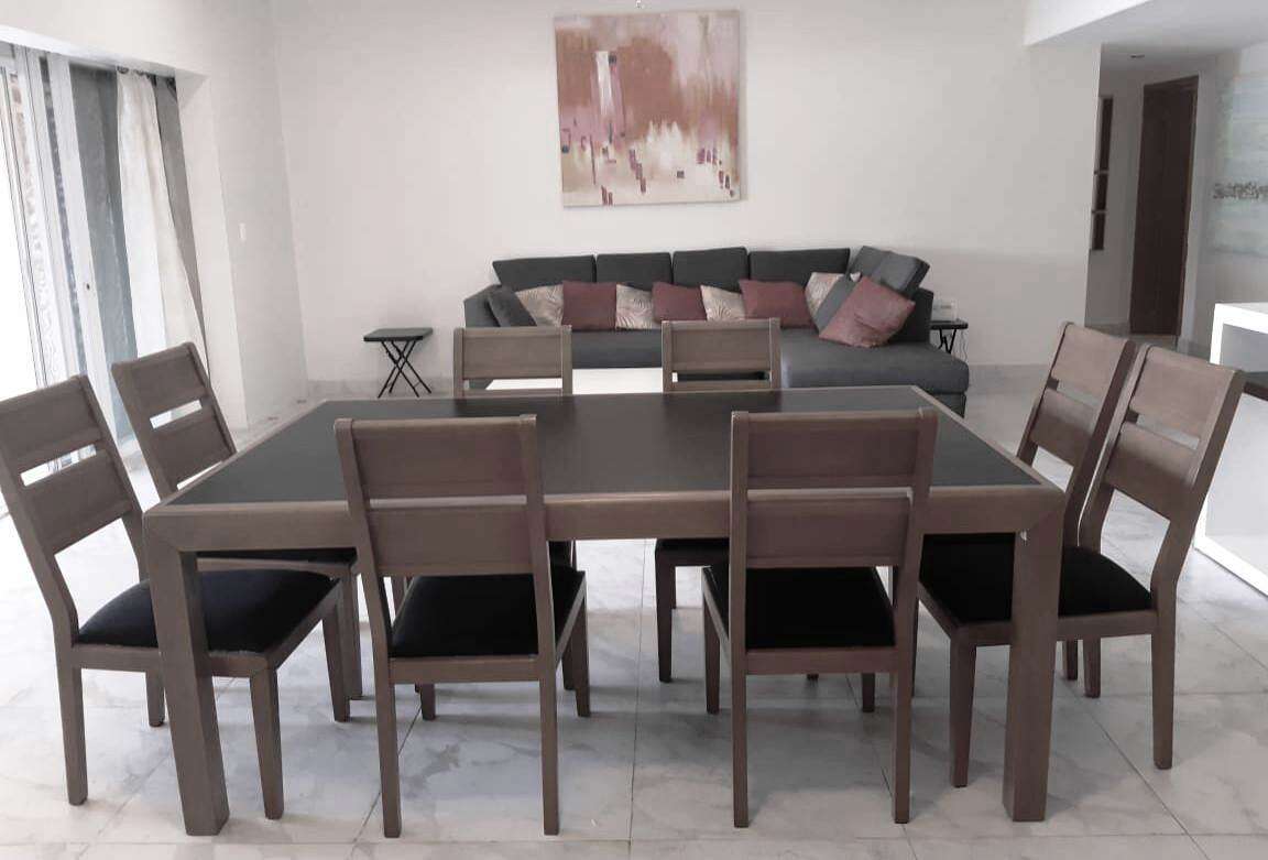 El gran salón, combinado con el comedor, tiene una enorme ventana corredera de suelo a techo, toda la longitud de la habitación con acceso a la terraza con zona de comedor.