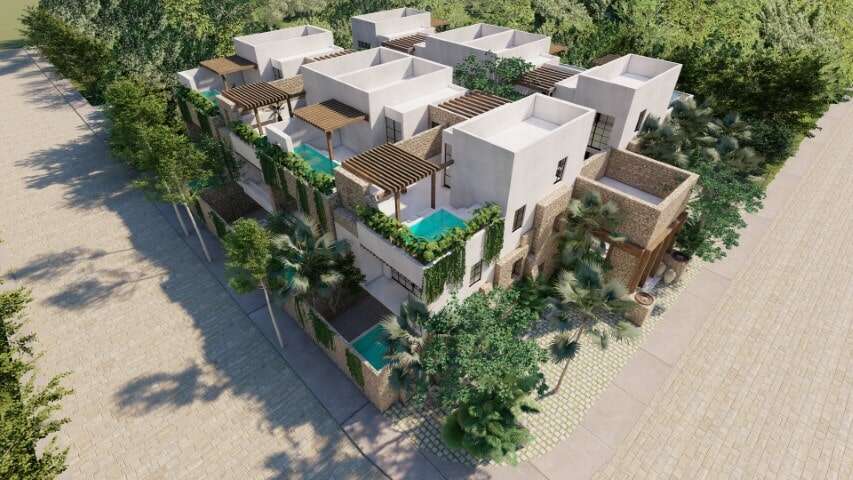 Venta de casas nuevas en Tulum, en un pequeño condominio para 8 familias, en la residencia cerrada Aldea Zama.