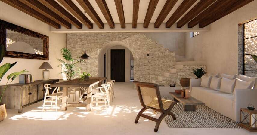 Todos los acabados son de materiales naturales: piedra, mármol, madera, metal.