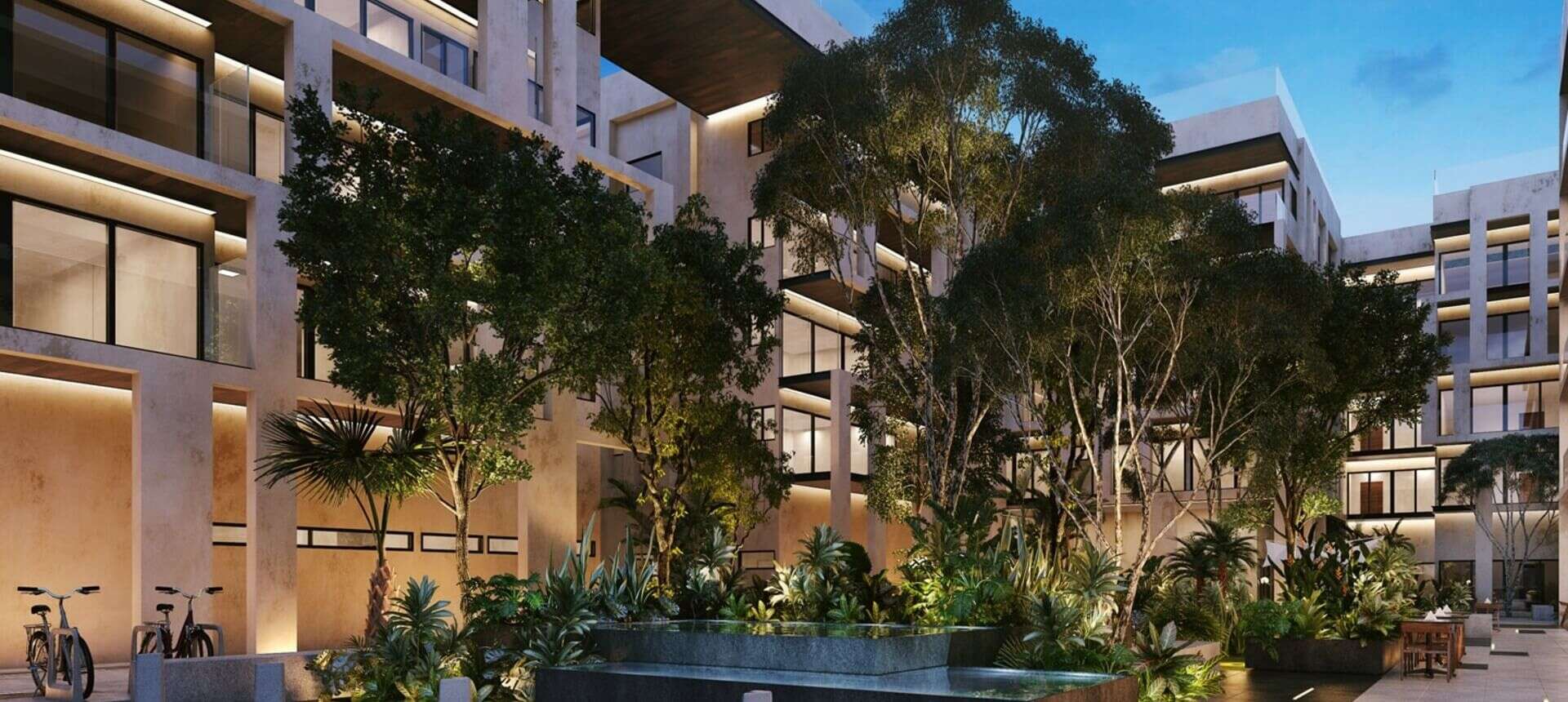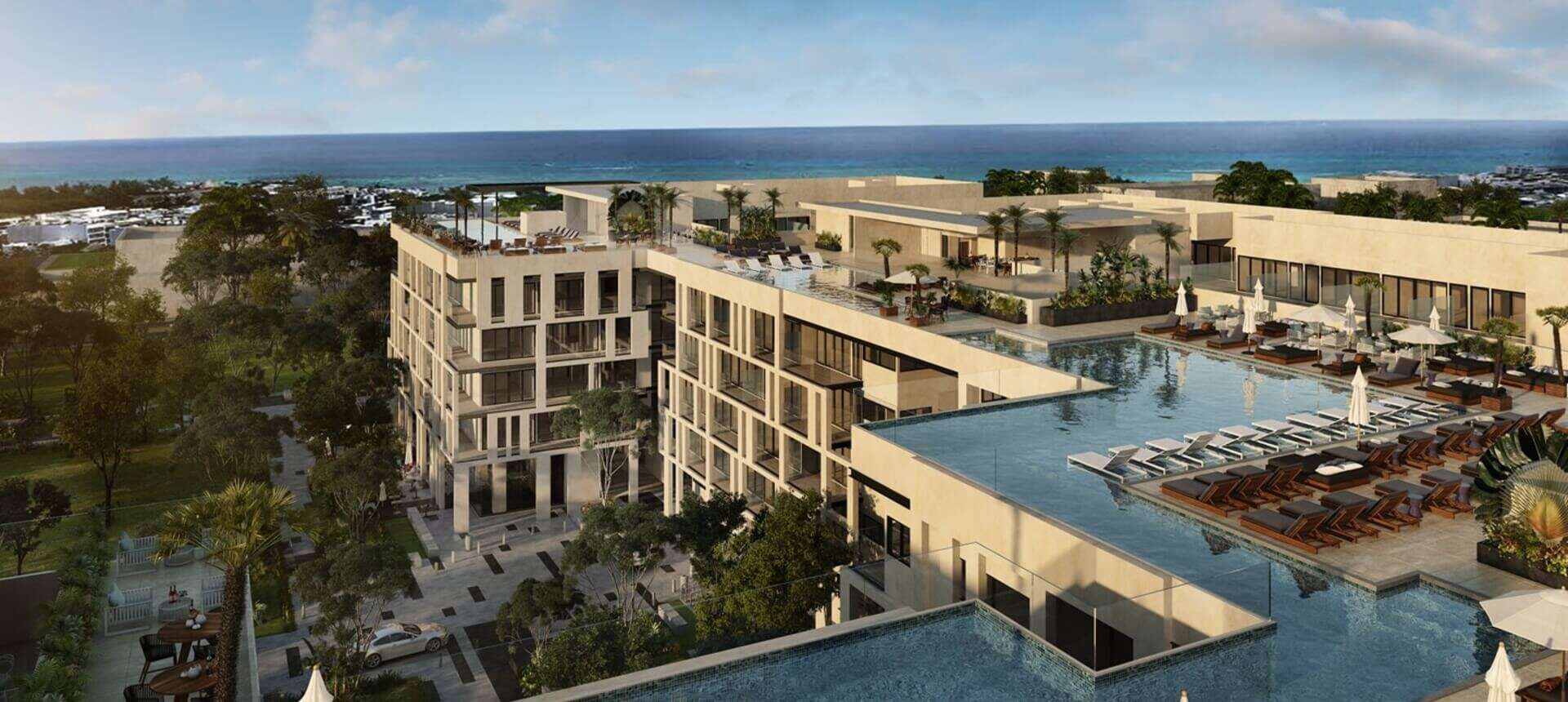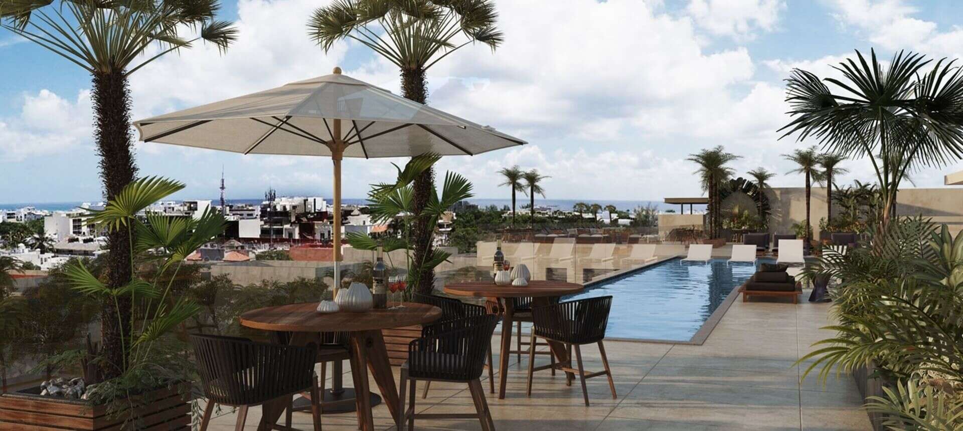 El condominio ofrece magníficas vistas del Mar Caribe y del centro de Playa del Carmen.