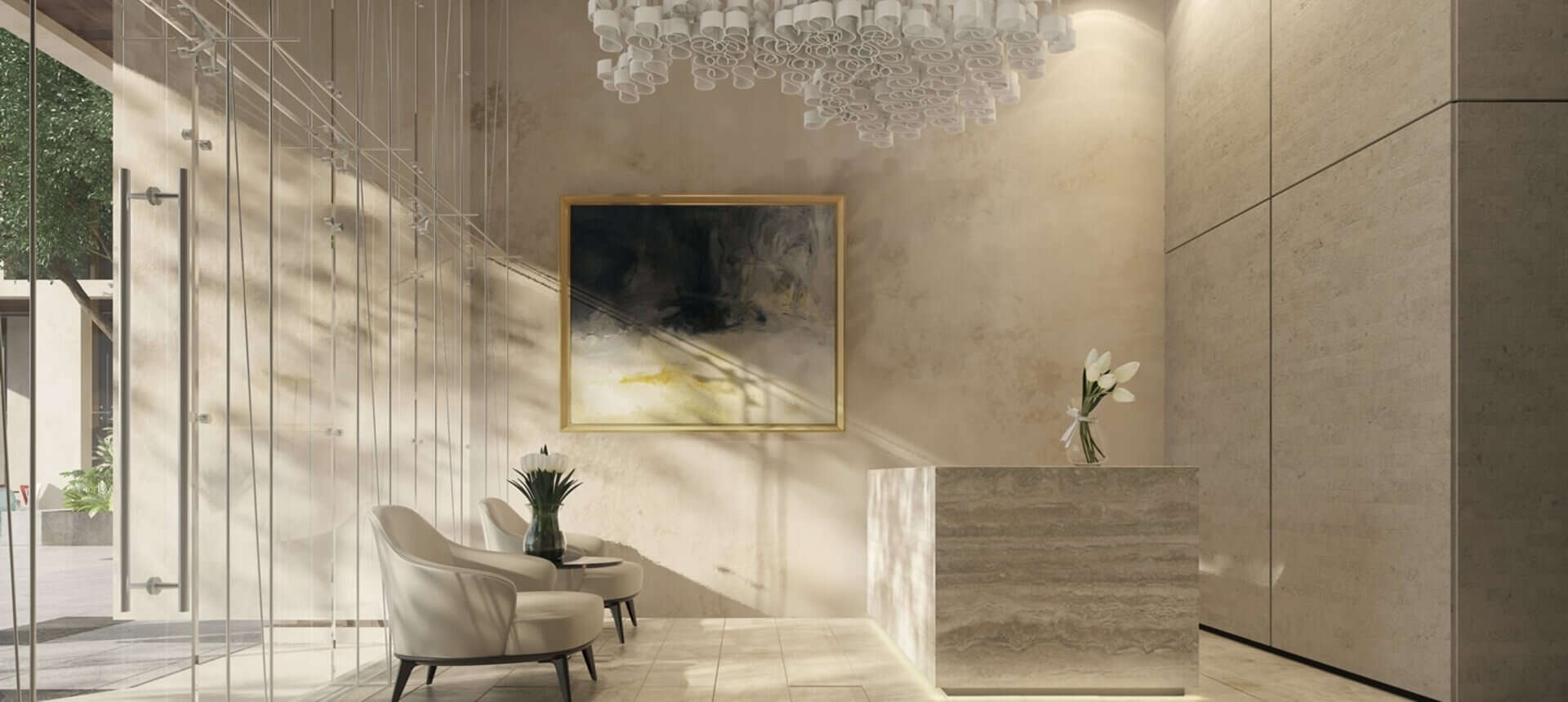 El edificio cuenta con pisos de uno y dos dormitorios y áticos de tres dormitorios y tres baños.