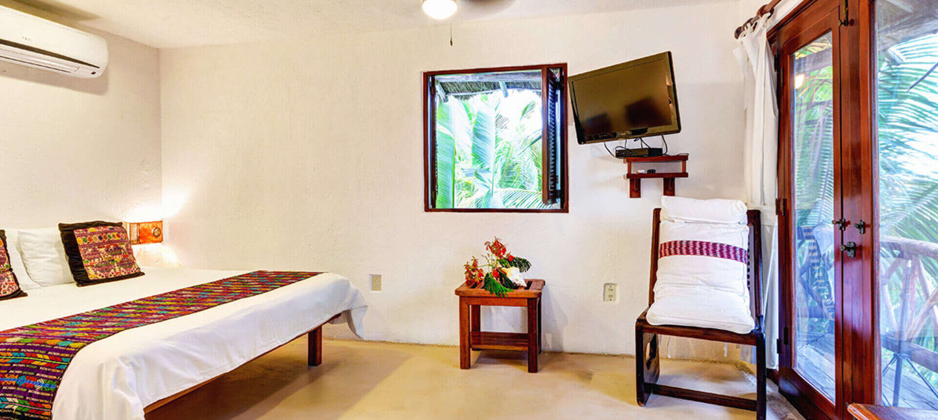 Dormitorio #5: cama doble, baño privado, aire acondicionado, ventilador de techo, TV, caja fuerte, entrada privada