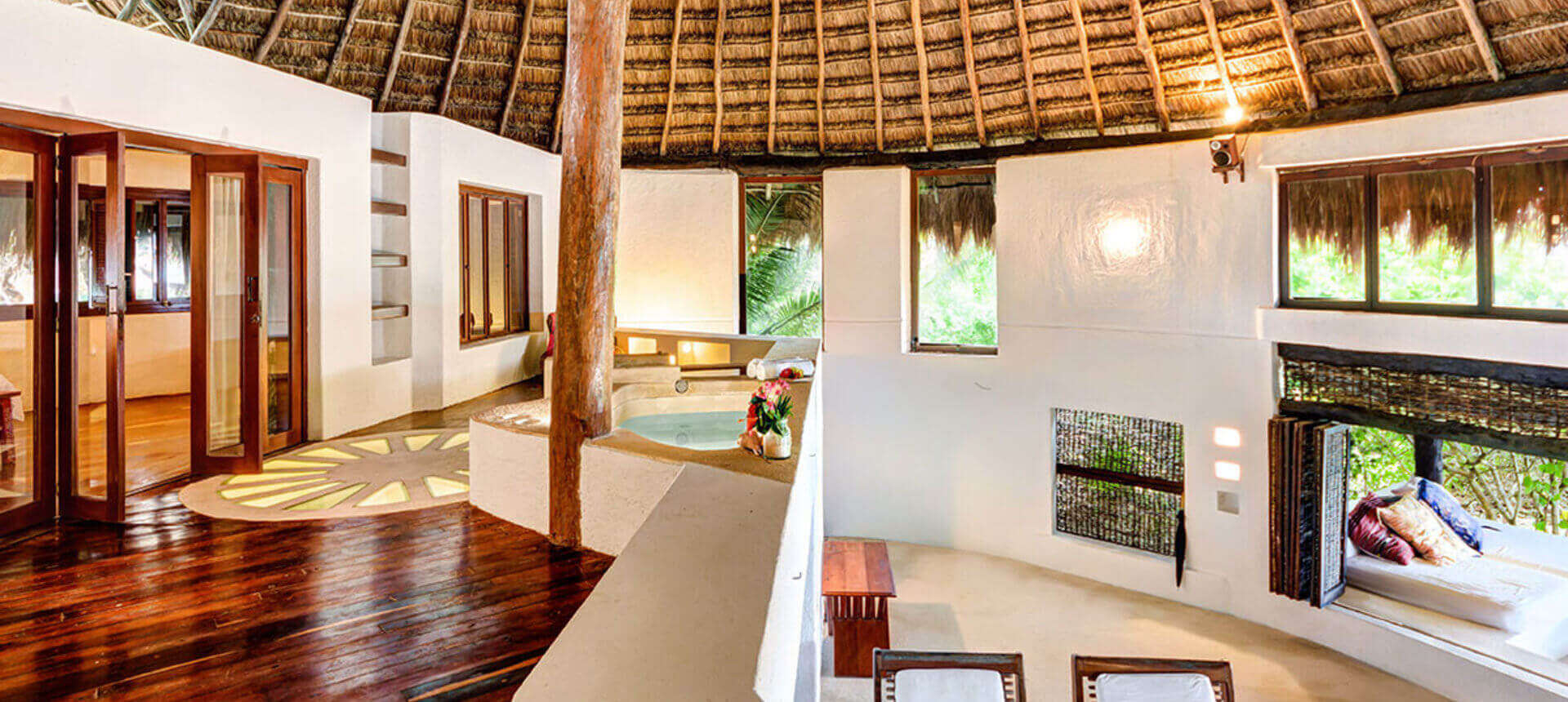 Villa Zacil Na es parte de un complejo junto con la villa de Casa Del Aqua en Puerto Aventuras y se pueden alquilar juntos o por separado.