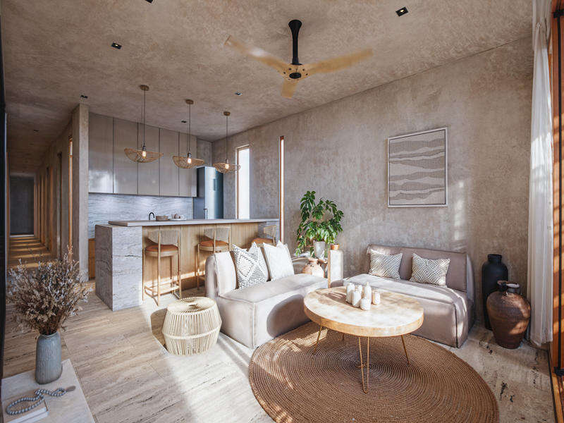 Квартиры в новом доме на первой линии моря, в заповедной зоне пригорода Тулума.