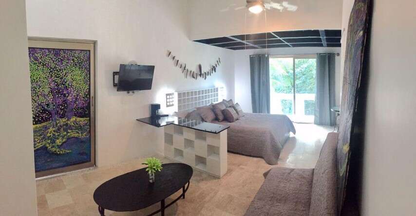 Из пяти спален в доме, для проживания можно использовать все, но три из них можно отделить, как самостоятельные студии, которые имеют отдельный вход, ванные и небольшую кухню, что идеально подходит для путешественников, ненадолго посетивших Пуэрто Авентурас.
